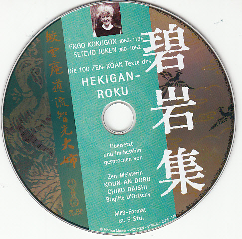 Diese 100 Koan der Sammlung HEKIGAN-ROKU der alten chinesischen Zen-Meister Setcho Juken ( 980-1051) und Engo Kokugon ( (1063-1135) gehört zu den bedeutendsten Werken buddhistischer Literatur und wird seit alters her in den Zen-Klöstern Chinas und Japans zur spirituellen Schulung benutzt. Die erste westliche Zen-Meisterin Brigitte D'Ortschy (Koun-An Doru Chiko Roshi) übersetzte diese Sammlung während ihrer Schulung in Japan aus den Originalen und trug während ihrer Sesshin in Deutschland zu diesen Kosan-Texten ihre Teisho vor. Diese MP3 ( 5 Stunden ) enthält nur die Koan-Texte.